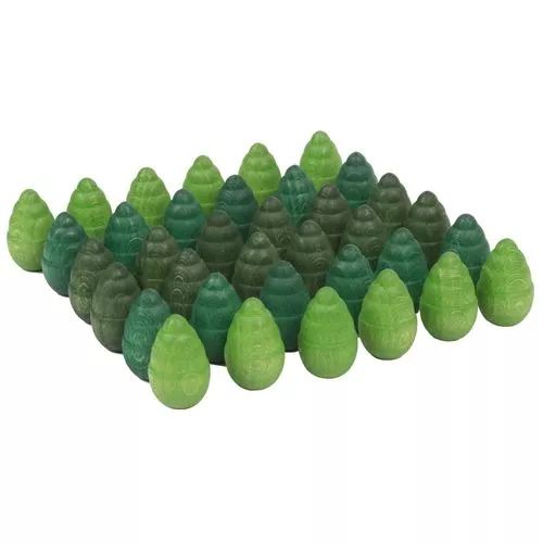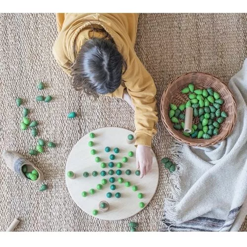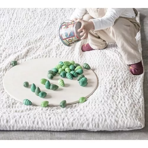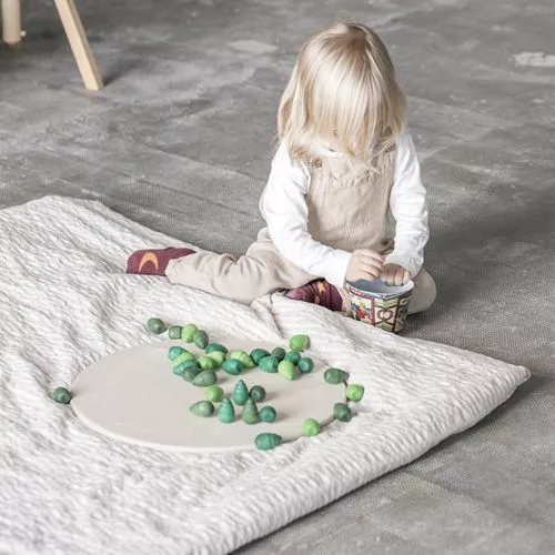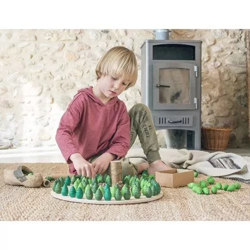 Leg een bos aan of voeg bomen toe aan bestaande speelsets met deze houten ‘Mandala Little Trees’ van het Spaanse merk Grapat. De kegelvormige speelgoedboompjes liggen prettig in de hand en zijn tevens prachtige decoratiestukken voor kerststalletjes of seizoenstafels.