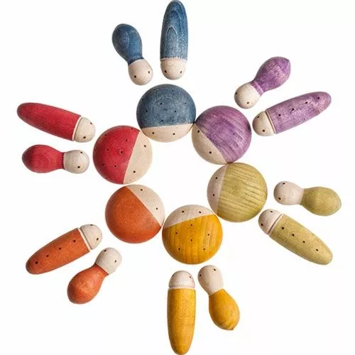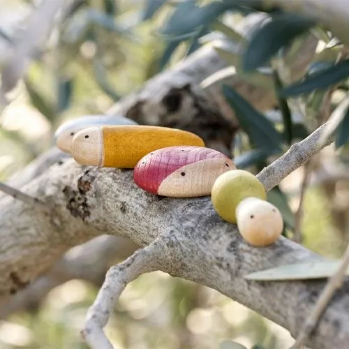 Een set van 18 houten insecten in sprekende kleuren van het Spaanse merk Grapat. Speciaal voor kleine onderzoekers en dierenvrienden die graag buitenspelen.