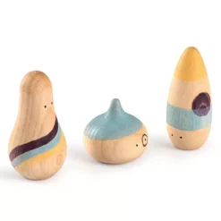 Een houten poppetje in een bakje ‘Little Things Vermell’ van het Spaanse merk Grapat om mee te spelen en kleine schatten in te verstoppen.