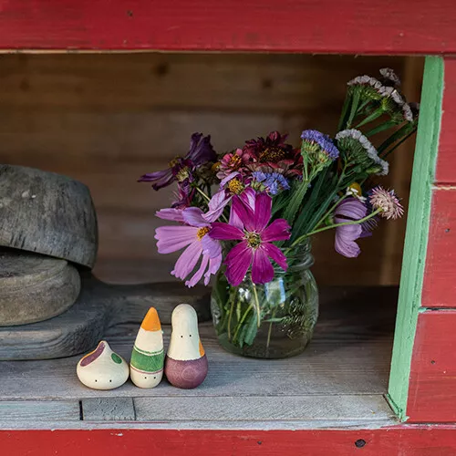 De drie speelfiguurtjes liggen prettig in de hand en passen in de broek- of jaszak om mee op avontuur te gaan.