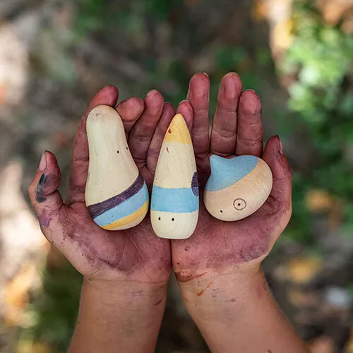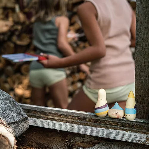 De drie speelfiguurtjes liggen prettig in de hand en passen in de broek- of jaszak om mee op avontuur te gaan.