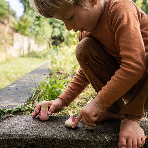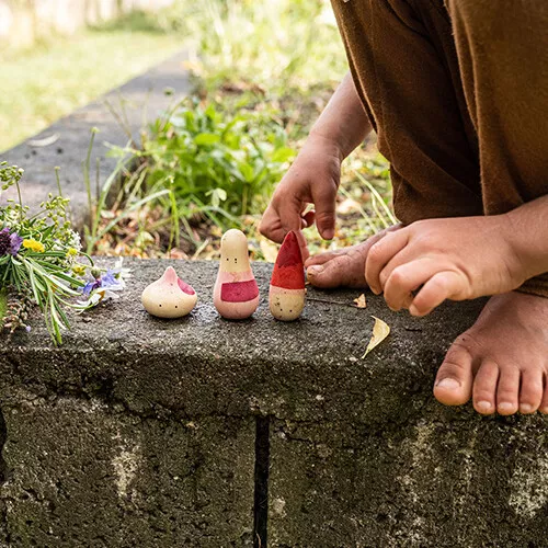 De drie speelfiguurtjes liggen prettig in de hand en passen in de broek- of jaszak om mee op avontuur te gaan.