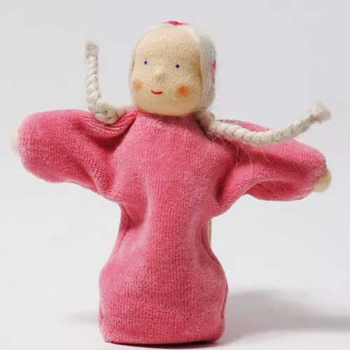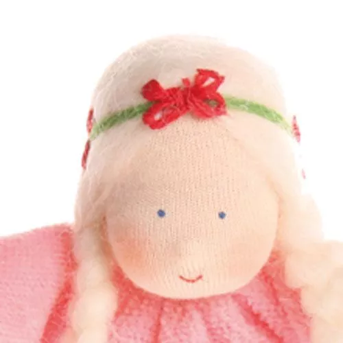 Het popje is op traditionele wijze met de hand gemaakt in Europa en het gezichtje is met de hand geschilderd, waardoor elk poppetje een unieke expressie heeft.