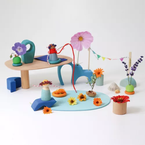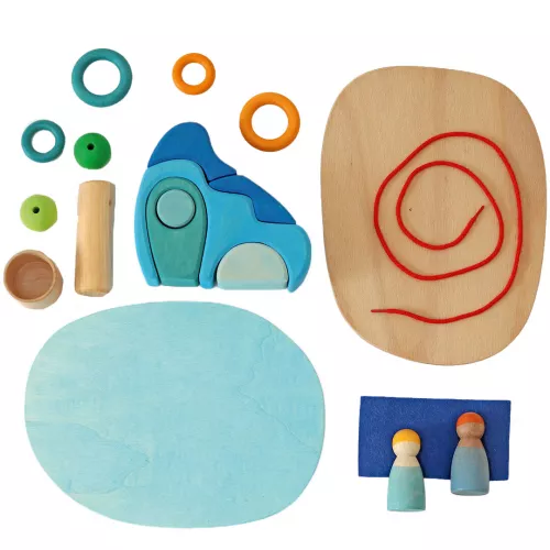 Wordt het een landschap of een fantasiefiguur met deze houten ‘Spielwelt Meeresrauschen’ van het Duitse merk Grimm’s. Veelzijdig speelgoed met een open einde. De verschillende vormen, formaten en heldere kleuren spreken het kinderen direct aan.
