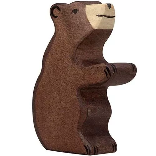 Een kleine, houten beer in zithouding, uit de wilde dieren serie van het Duitse merk Holztiger. Speelgoed dat onderdeel kan uitmaken van een tafereeltje, seizoentafel of om zomaar tentoon te stellen. Dit speeldiertje met afgeronde hoeken ligt prettig in kinderhanden.