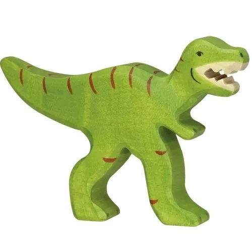 Een houten Tyrannosaurus Rex uit de dinosaurus serie van het Duitse merk Holztiger. Deze speelgoed dinosaurus met afgeronde hoeken ligt prettig in kinderhanden.