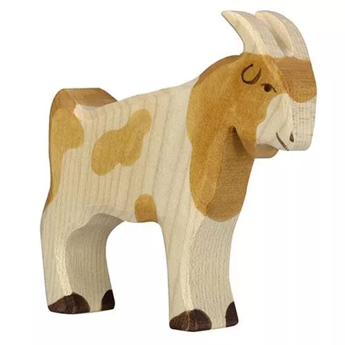 Een geitenbok uit de boerderijserie van het Duitse merk Holztiger. De speelgoed geit met afgeronde hoeken ligt prettig in kinderhanden.