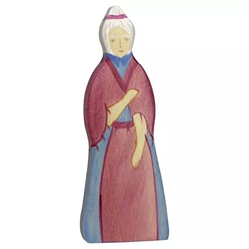 Een houten grootmoeder uit de boerderijserie van het Duitse merk Holztiger. Speelgoed dat deel kan uitmaken van een boerderij- of een seizoenstafel of om zomaar in de kast ten toon te stellen. De speelfiguur met afgeronde hoeken ligt prettig in kinderhanden.