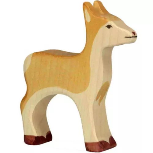 Een houten ree uit de bosdierenserie van het Duitse merk Holztiger. De ree met afgeronde hoeken ligt prettig in kinderhanden.