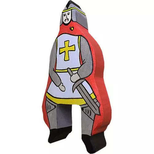 Een houten ridder met rode mantel uit de sprookjes en ridders serie van het Duitse merk Holztiger. Deze speelgoedridder met afgeronde hoeken ligt prettig in kinderhanden.