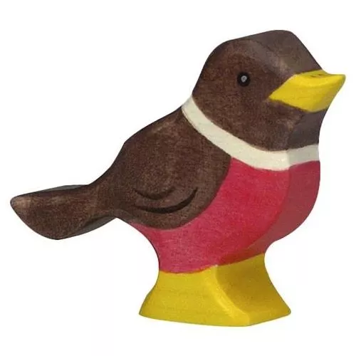 Een houten roodborstje uit de bosdierenserie van het Duitse merk Holztiger. Speelgoed dat mooi deel kan uitmaken van een tafereeltje, seizoenstafel of om zomaar in de kast ten toon te stellen.