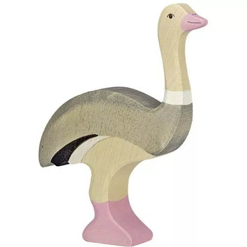 Een houten struisvogel uit de wilde dieren serie van het Duitse merk Holztiger. Speelgoed dat mooi deel kan uitmaken van een tafereeltje, dierentuin of om zomaar in de kast ten toon te stellen.