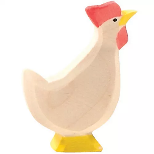 Deze kakelende kip van het Duitse merk Ostheimer voelt zich helemaal thuis op de speelboerderij. Het houten speelfiguur is met de hand gemaakt en beschilderd.