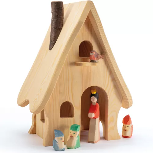 Een sprookjesachtig, houten poppenhuis van het Duitse merk Ostheimer. Speelgoed om mee te spelen, bij weg te dromen of als decoratie op de seizoenstafel. Het kabouterhuis biedt een sfeervol onderkomen aan dwergen, verdwaalde prinsessen en andere sprookjesfiguren.