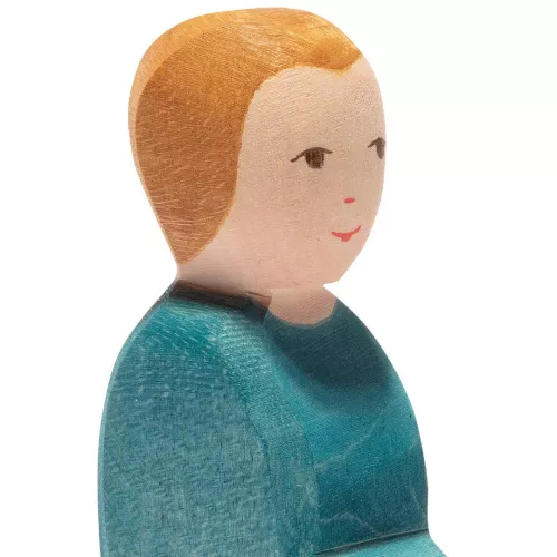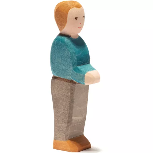 Maak de speelgoedfamilie compleet met deze vader van het Duitse merk Ostheimer. Het houten speelfiguur met blond haar en een blauw shirt is met de hand gemaakt en beschilderd. Mooi voor op de speeltafel, in het poppenhuis of als onderdeel van een gezellig boerderij tafereel.