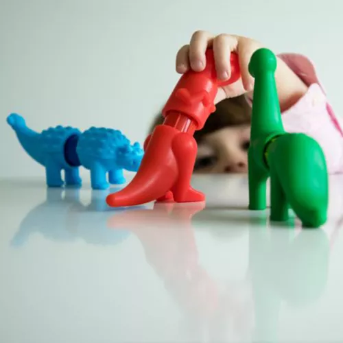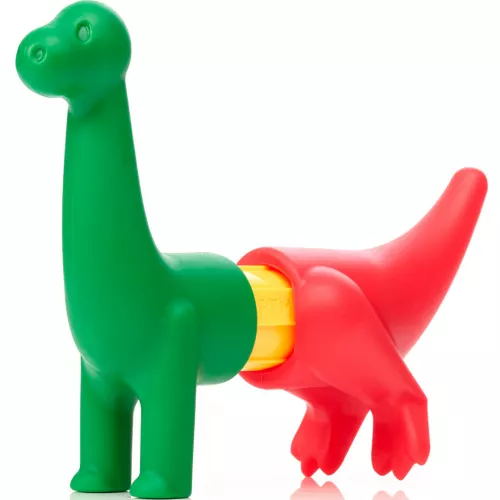 De extra grote, zachte onderdelen van de dino’s klikken eenvoudig op de staven. De losse stukjes zijn 6 cm en daardoor goed vast te houden door kleine kinderhandjes.